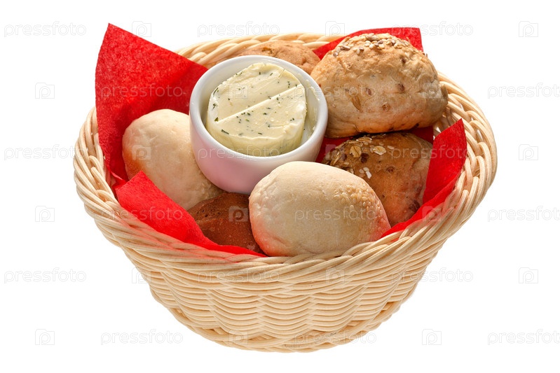 Хлеб в корзине с маслом