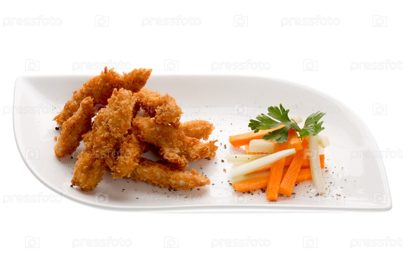 Куриные ломтики в кляре с овощами