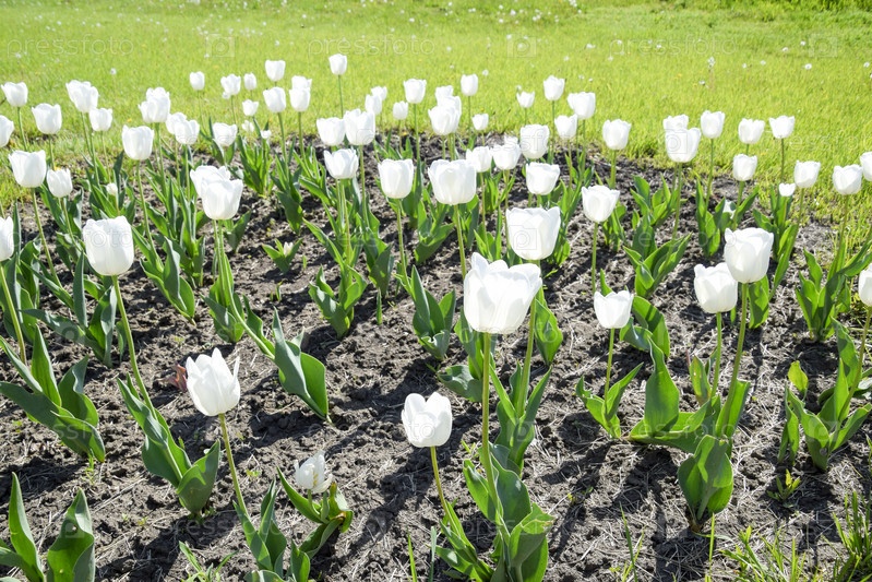 Клумба с белыми тюльпанами