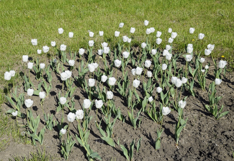 Клумба с белыми тюльпанами
