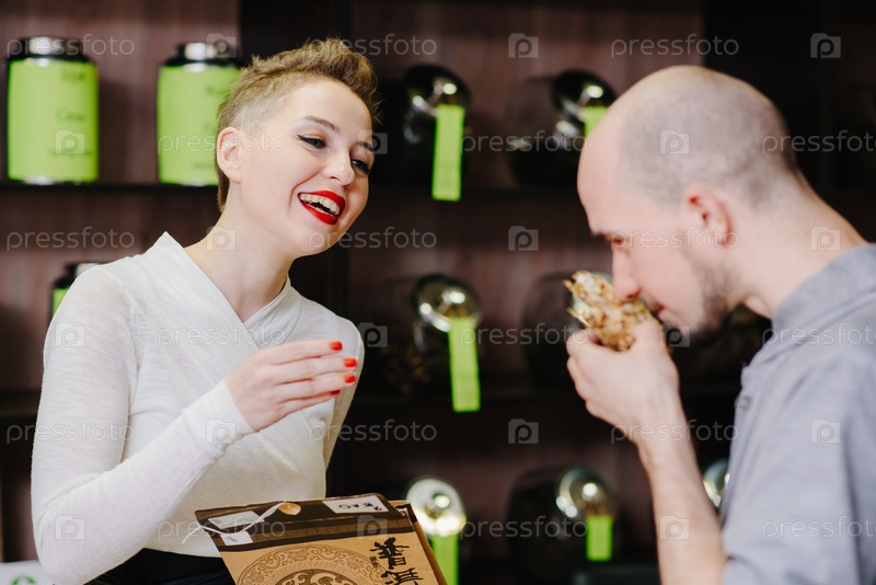 Продавец предлагает понюхать чай