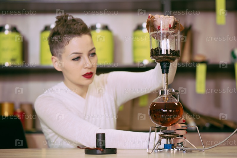 Девушка делает чай в кафе