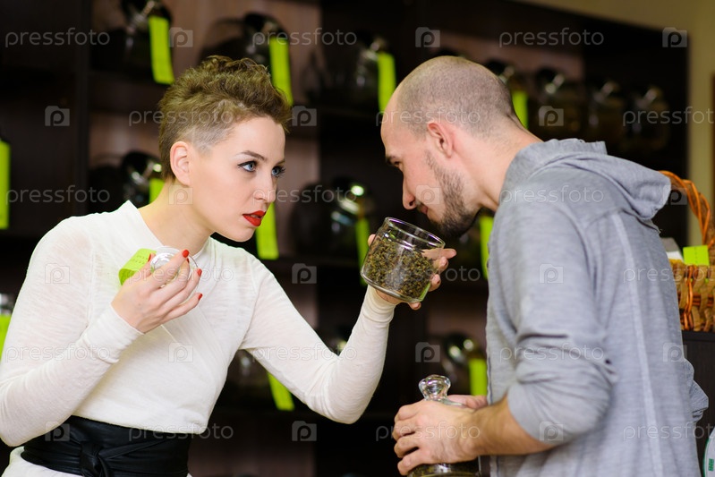 Продавец предлагает понюхать чай