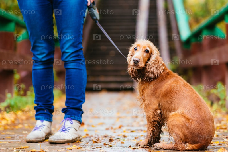 Женщина с собакой в осеннем парке
