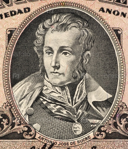 Антонио Хосе де Сукре (1795-1830) на банкноте 5 сукре. Лидер борьбы за независимость Венесуэлы