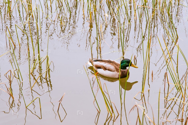 Утка плавает в пруду в Москве