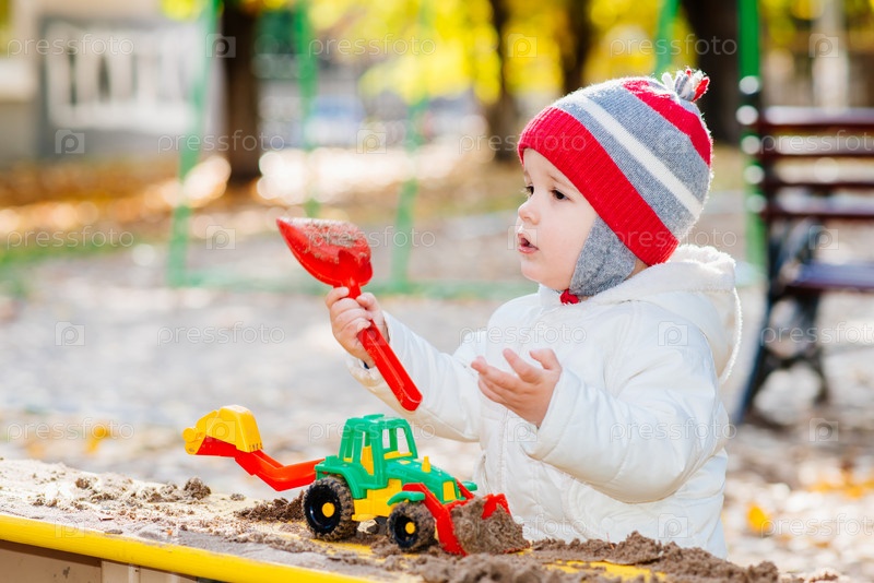 Ребенок играет с экскаватором