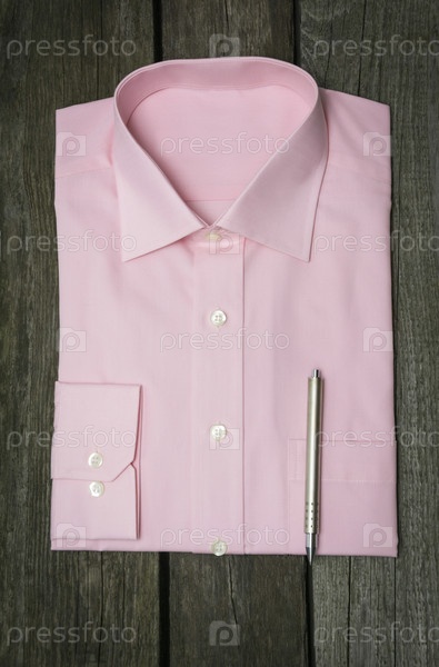 Розовая рубашка и ручка на деревянном фоне