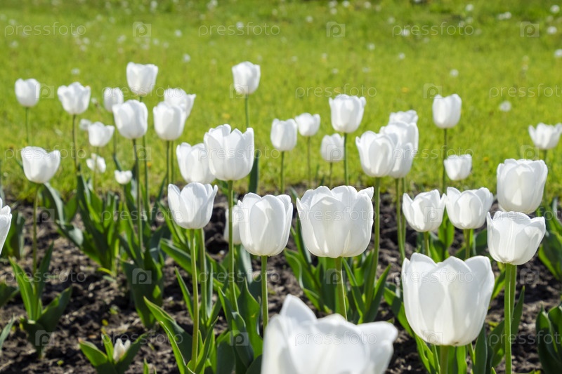 Клумба с белыми тюльпанами