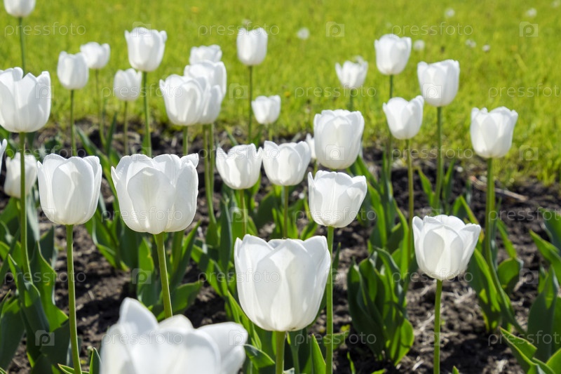 Клумба с белыми тюльпанами