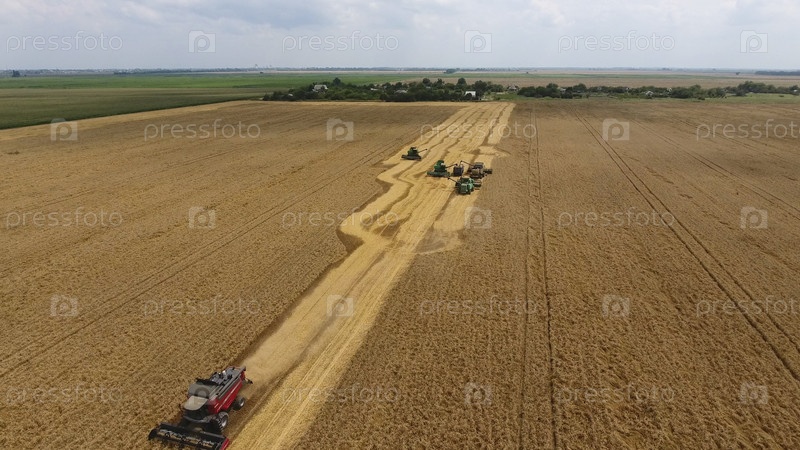 Сбор урожая пшеницы комбайнами