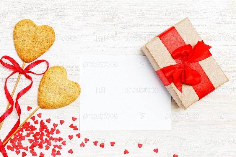 Коробка с подарком и печенье-сердце
