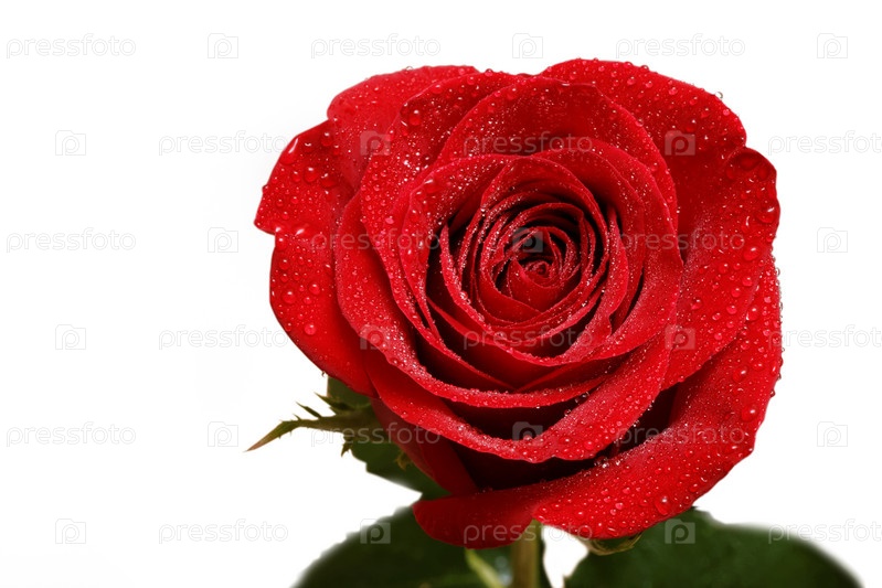 Красная роза с каплями росы