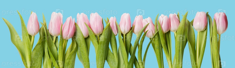 Ряд нежных розовых тюльпанов