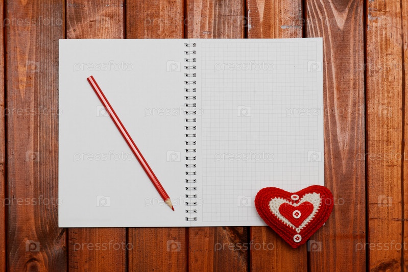 Красное сердце, карандаш на Валентинов день