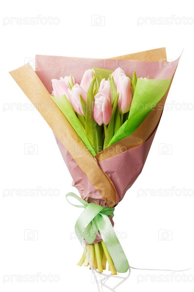 Букет нежных розовых тюльпанов, завернутый в бумагу
