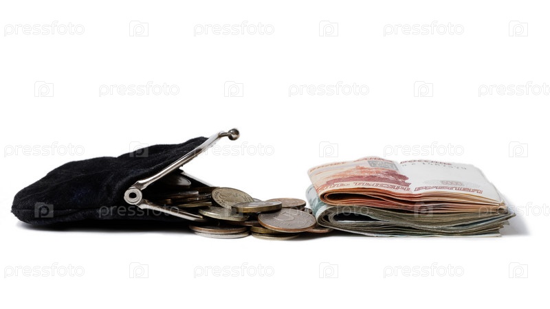 Кошелек с монетами и наличными деньгами