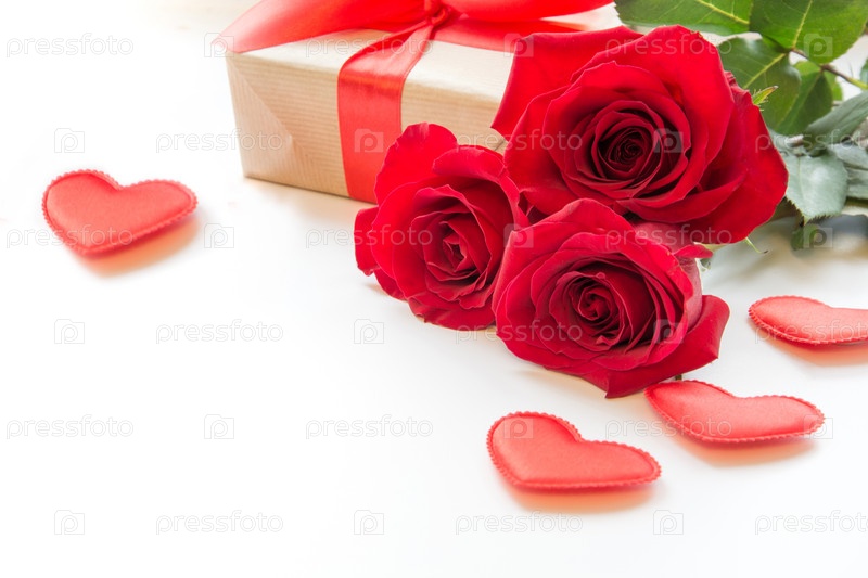 Букет из роз и сердца на белом фоне