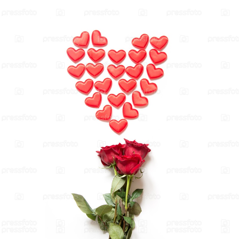 Красные сердца и букет из красных роз