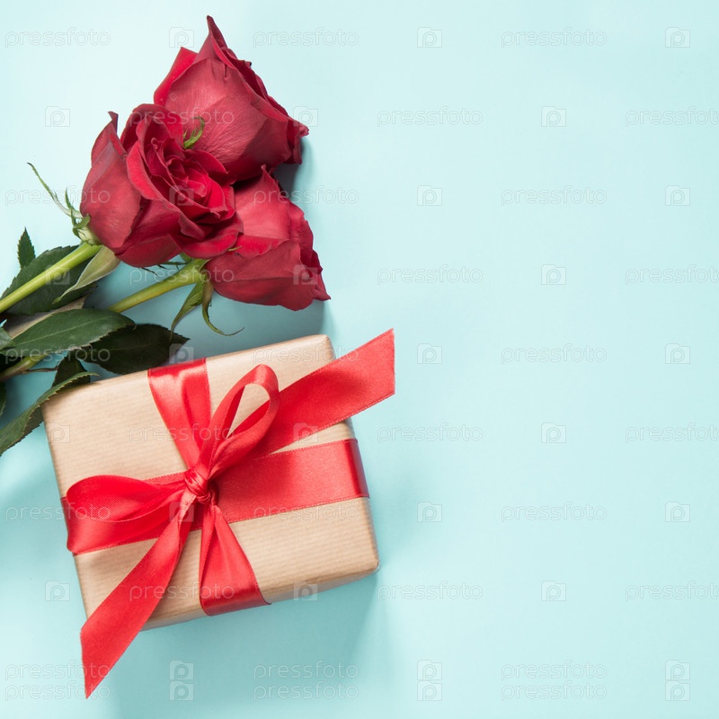 Букет из красных роз и подарок