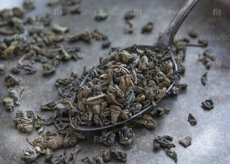Зеленый чай в металлической ложке