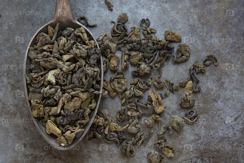 Зеленый чай в металлической ложке