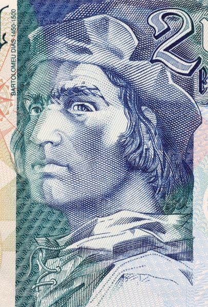 Бартоломеу Диаш (1451-1500) на купюре 2000 евро 2000 года из Португалии. Дворянин королевского двора и исследователь
