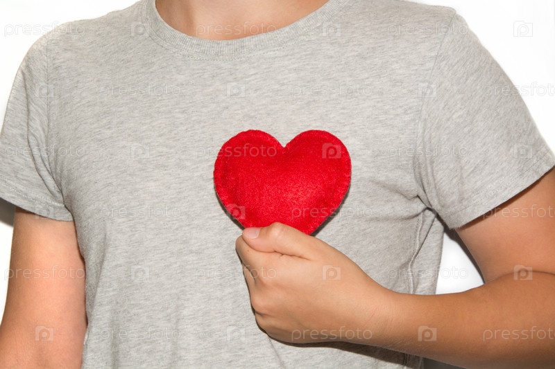 Держать красное сердце в руке