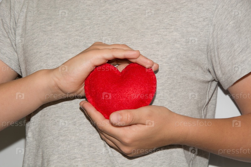 Держать красное сердце в руке