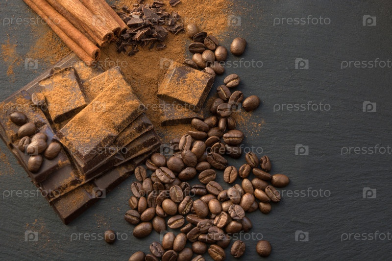 Шоколад, корица и кофе в зернах