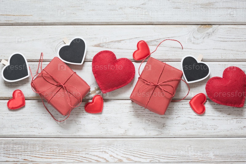 Красные подарочные коробки и сердца