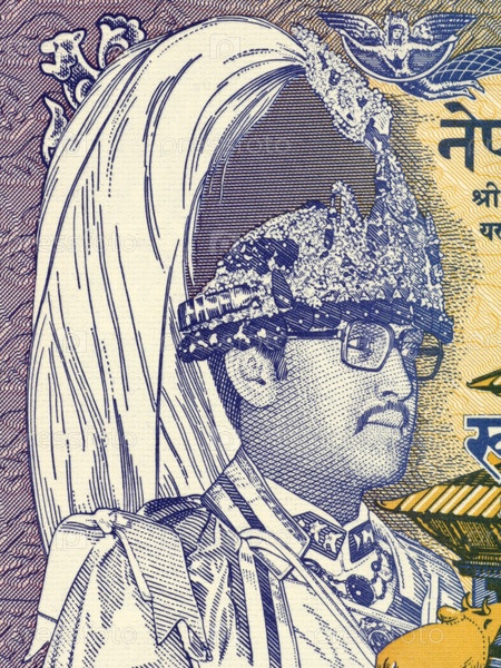 Бирендра Бир Бикрам на купюре у рупия 1991 г. из Непала. Король Непала в 1972-2001 годах