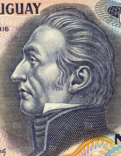 Хосе Хервасио Артигас Арнал на банкноте 50 песо 1988 года из Уругвая. Национальный герой, также известен как отец уругвайской независимости