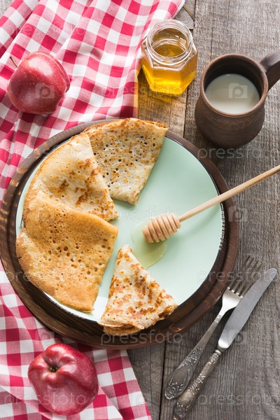 Вкусный традиционный русский завтрак с блинами