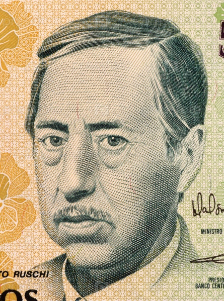 Аугусто Руши на банкноте 500 новых крузадо 1990 года из Бразилии. Ученый, агроном, натуралист, эколог и юрист. Бразильский покровитель экологии