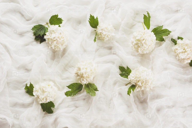 Белый фон текстиля и цветы