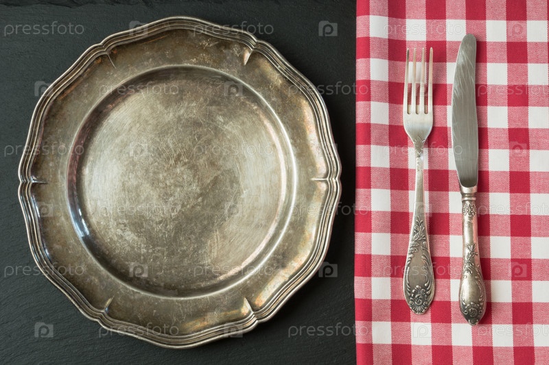 Столовые приборы и металлическая тарелка