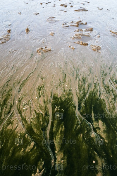 Естественный узор на песчаном пляже во время вечернего отлива