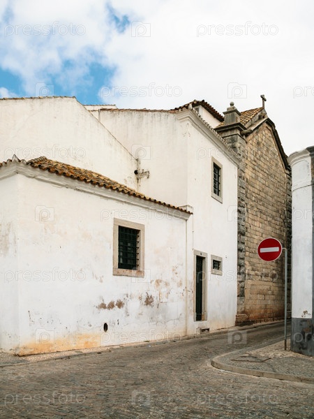 Улица с типичными домами в старом городе Фару