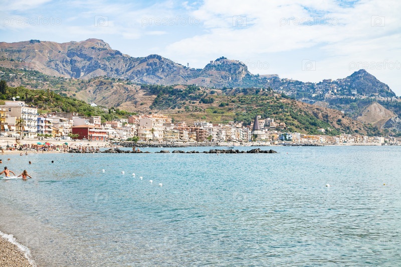 Люди в море рядом с набережной Джардини-Наксос