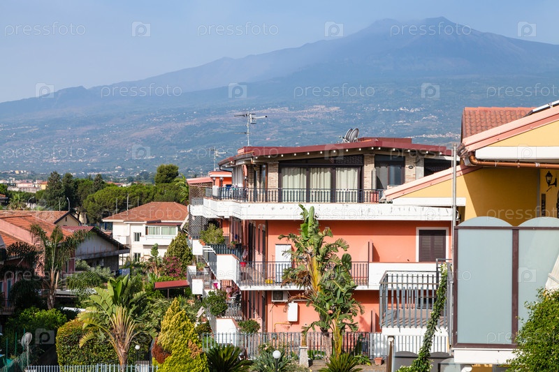 Дома на улице в Джардини Наксос и Этна