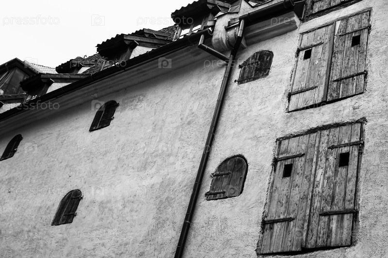 Стены средневекового дома с деревянным жалюзи в Риге