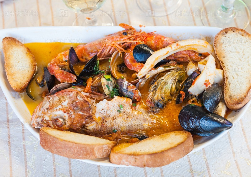 Рыбный суп с морепродуктами в сицилийском ресторане