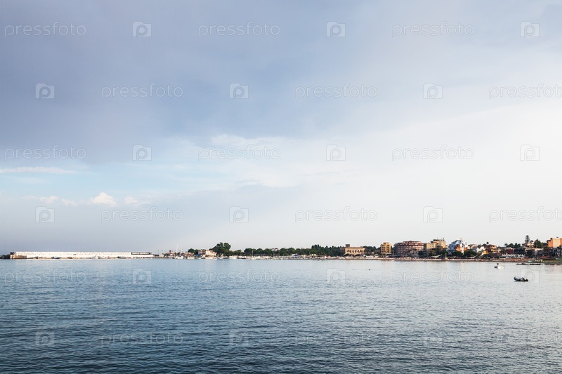 Небо над портом и пляжем в городе Джардини-Наксос