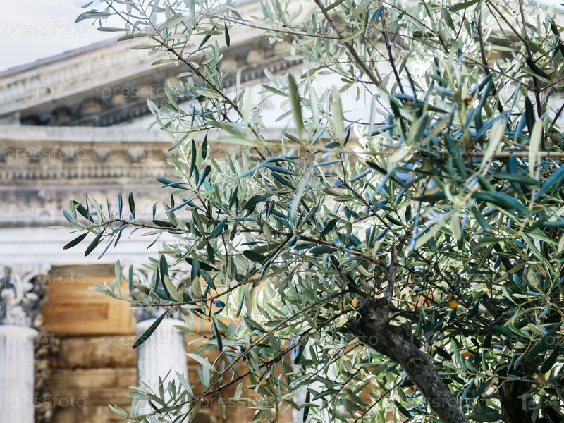 Оливковое дерево и Мезон Карре в городе Ниме
