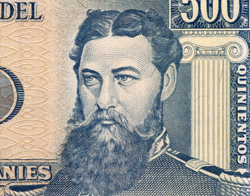 Генерал Бернардино Кабальеро на купюре 500 гуарани 1982 года от Парагвая. Президент Парагвая в течение 1881-1886