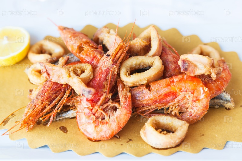 Тарелка с жареными морепродуктами в сицилийском ресторане