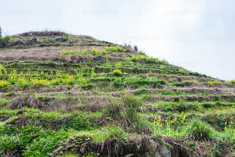 Холм с террасами рисовых земель в деревне Дажай