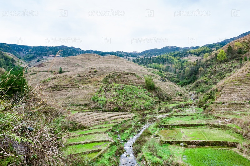 Вид террасных садов и ручей в Дажае