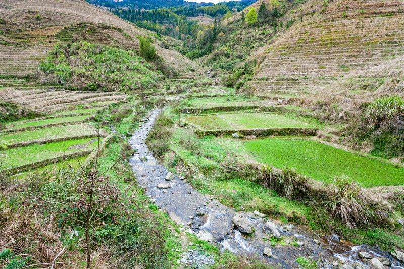 Вид террасных садов и ручей в Дажае